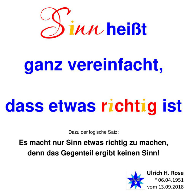 Und nicht das Gegenteil von Sinn vergessen, das ist der Unsinn.