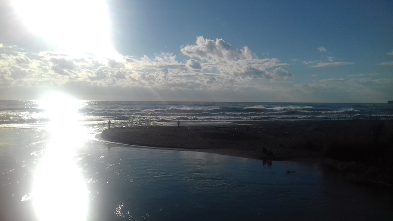 Ich liege am Sonntag-Nachmittag am Strand, döse so ca. 1/2 Stunde vor mich hin und lasse mich von der Sonne bescheinen. Die Temperaturen heute ca. 19°C = Luft + Wasser.