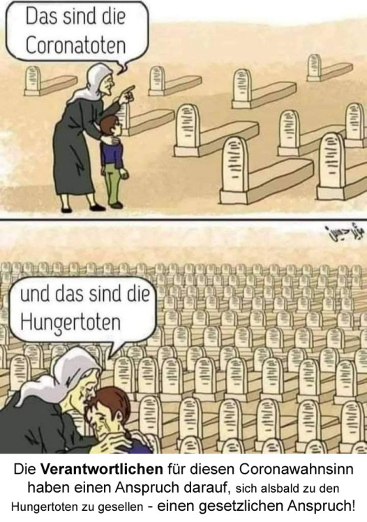 Während Alexander Lukaschenko das Coronavirus im Juli 2020 für besiegt erklärte, macht unsere Corona-Regime weiter und immer weiter. Die Toten in Deutschland durch Suizid, durch Nichtbehandlung von anderen Krankheiten in Krankenhäuser, durch Falschbehandlung von angeblich mit Corona Infizierten, etc. übersteigt die tatsächlichen Coronatoten um ein Vielfaches.