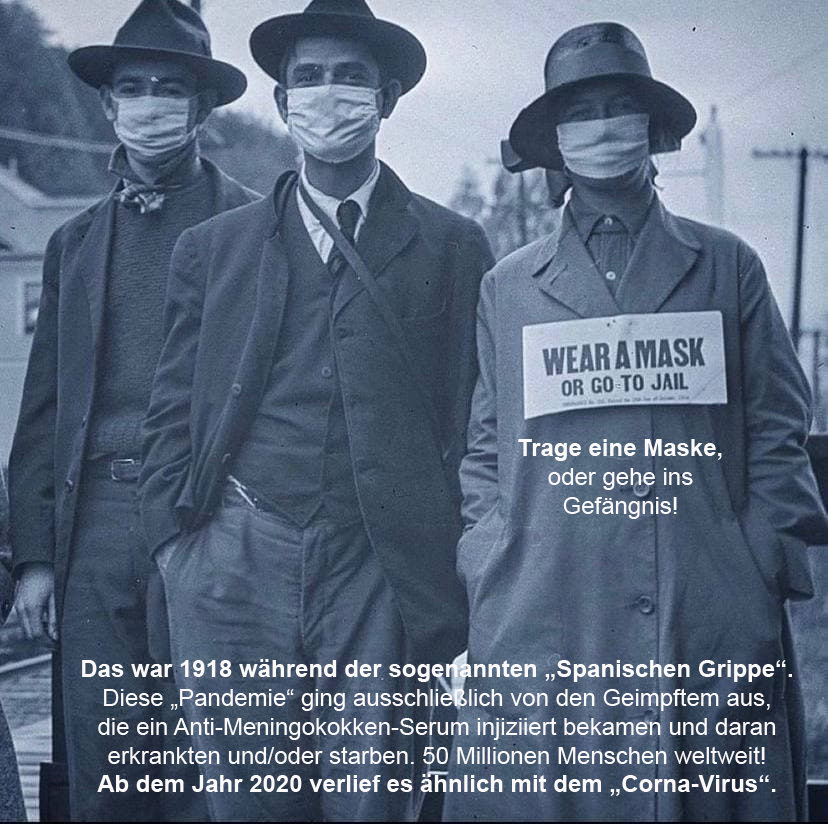 Wenn Dich zum Thema Impfen bisher nichts geschockt hat, dann sicher dieses Video von Clint Cumaranatunge zur Spanischen Grippe 1918. Diese Video gibt es leider nicht mehr, welches die Wahrheit über die Spanische Grippe aufzeigt. Ganz kurz von mir als Gedächtnisprotokoll geschildert: Im 1. Weltkrieg starben nur diejenigen, die Geimpft wurden, das waren nur die Soldaten. Da man noch viele Impfdosen übrig hatte begann man die Zivilbevölkerung zu impfen. Danach stellte man fest, dass nur die Geimpften krank wurden und davon ca. 1/3 starben. So kam es insgesamt zu den 50 Millionen Toten.